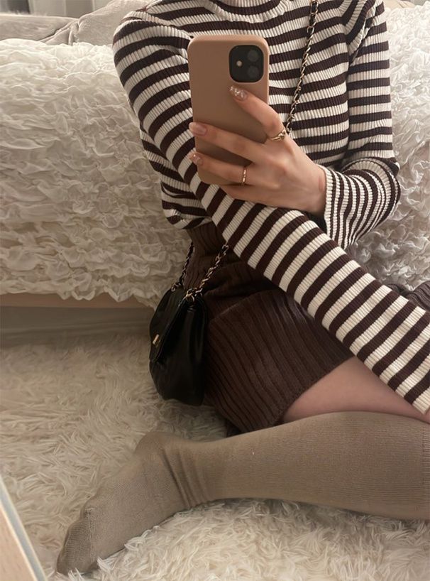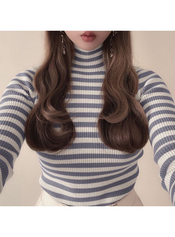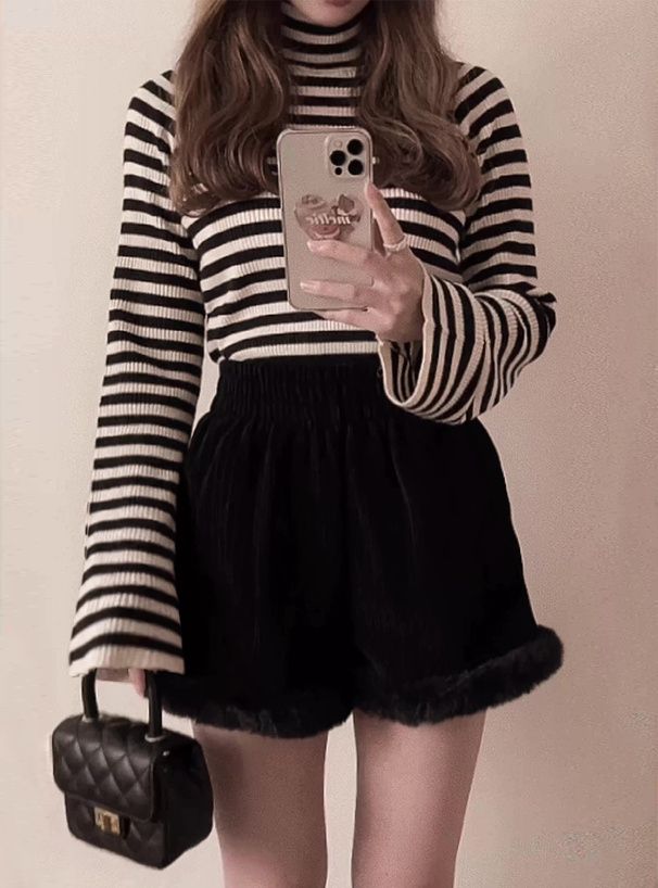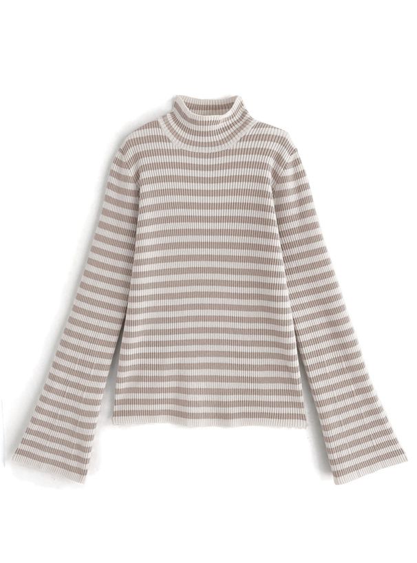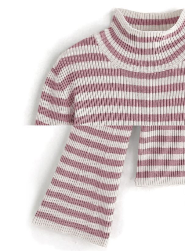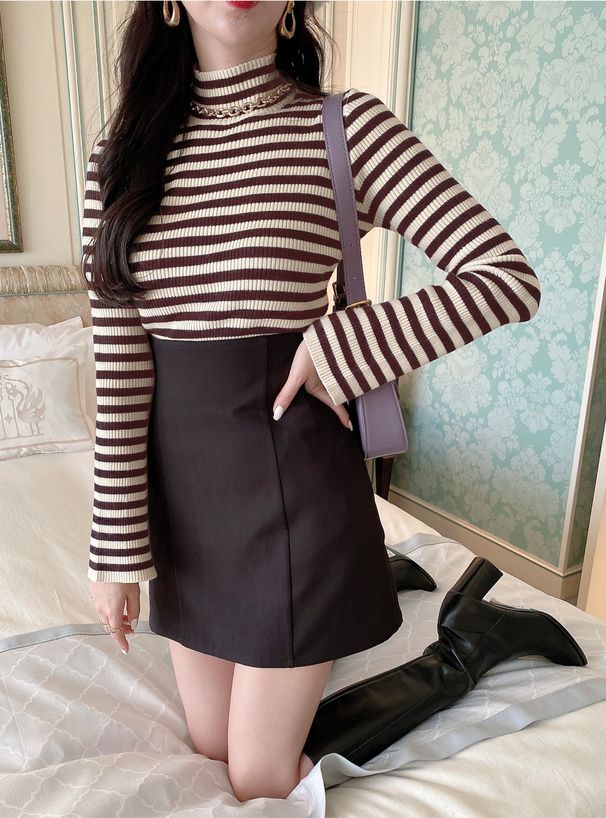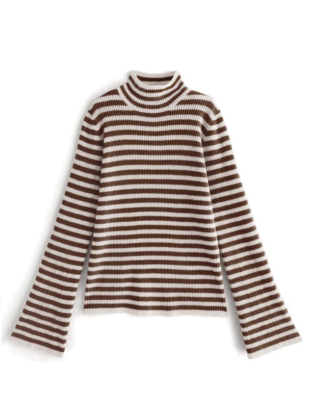 橫條紋彈性針織上衣
