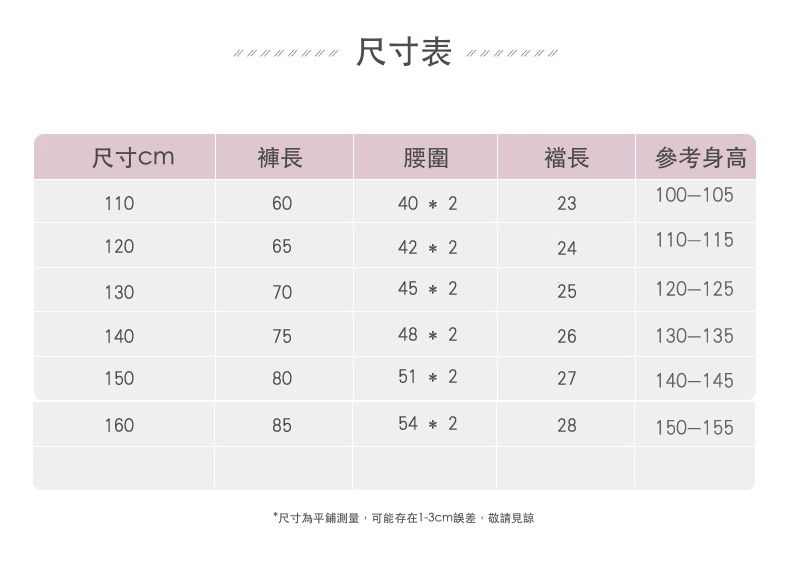 110cm、120cm、130cm、140cm、150cm、160cm