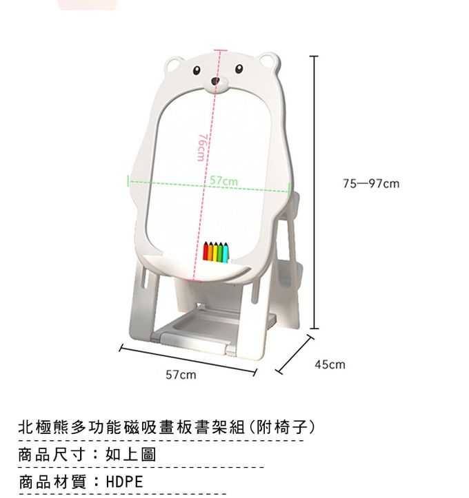 品名:北極熊多功能磁吸畫板書架組(附椅子)