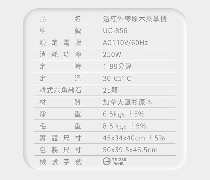 • 品名:遠紅外線桑拿機 韓式赭石輕便小型 UC-856 (泡腳/乾式足浴/汗蒸)