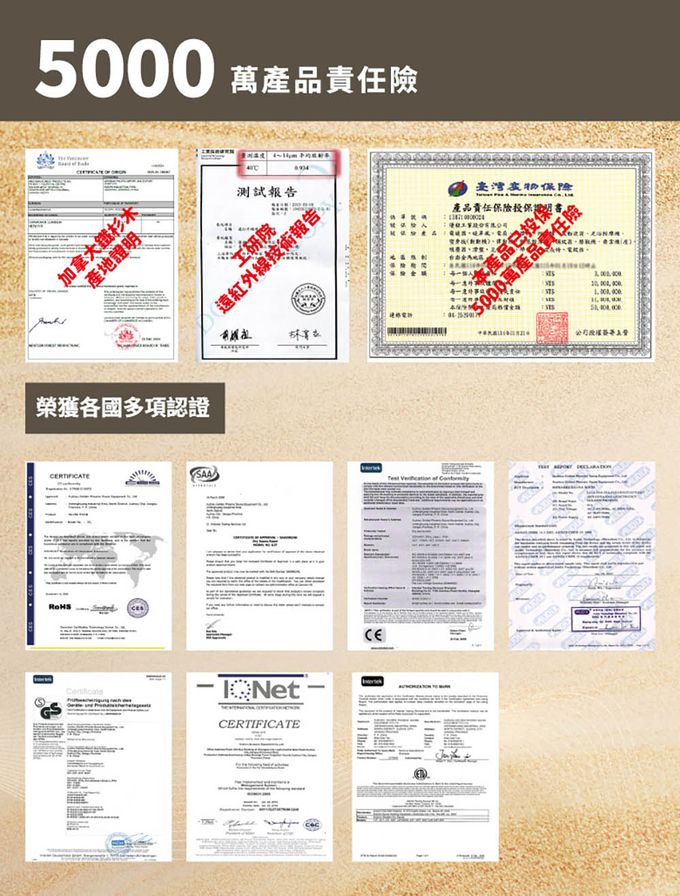 產品相關安全檢驗報告:■5000萬產品責任險