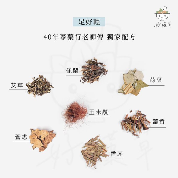 成分:玉米鬚、艾草、藿香、荷葉、香茅、蒼朮、陳皮、佩蘭