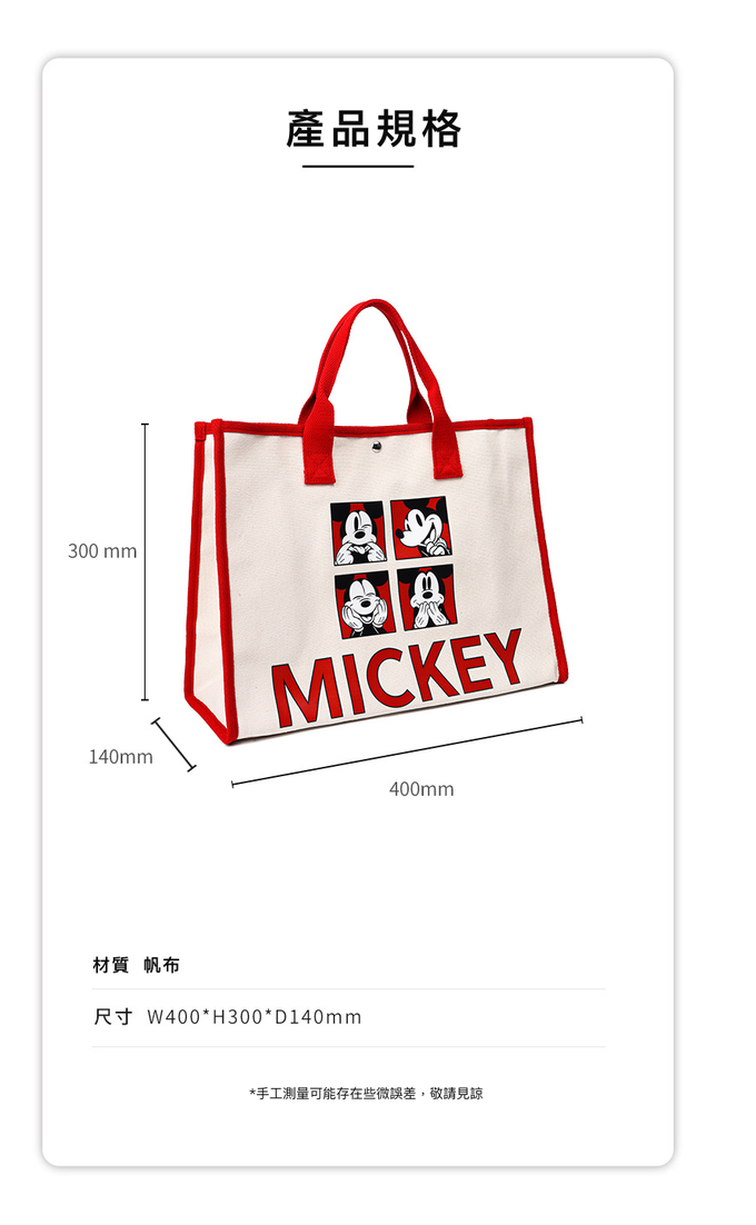簡約帆布大容量托特包-卡通人物米奇-紅色 (30x40x14cm)