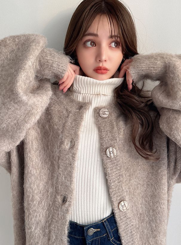 前後2way羊毛感柔軟長版針織外套