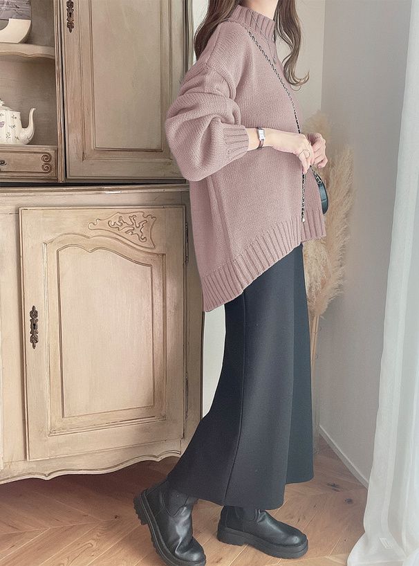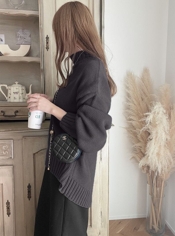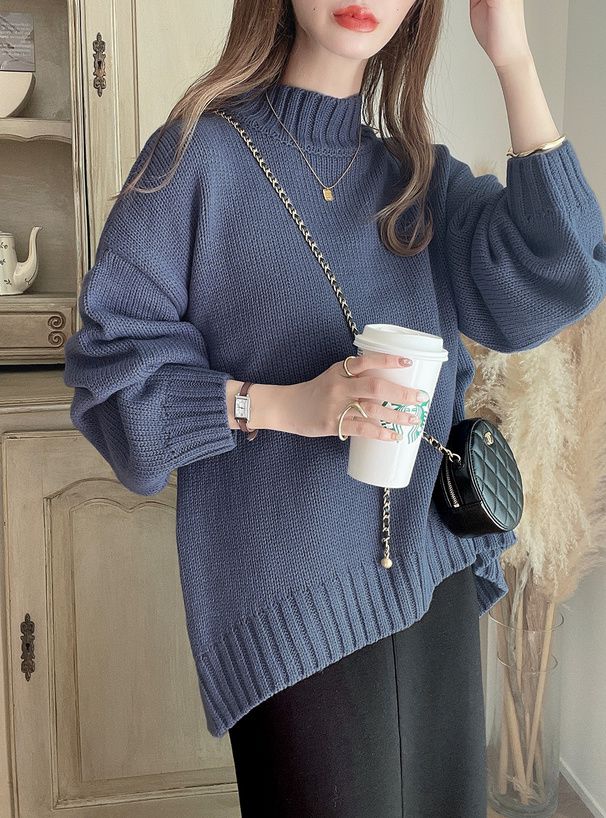 日本 GRL - 後開衩小高領寬鬆針織上衣-深海藍 (F)