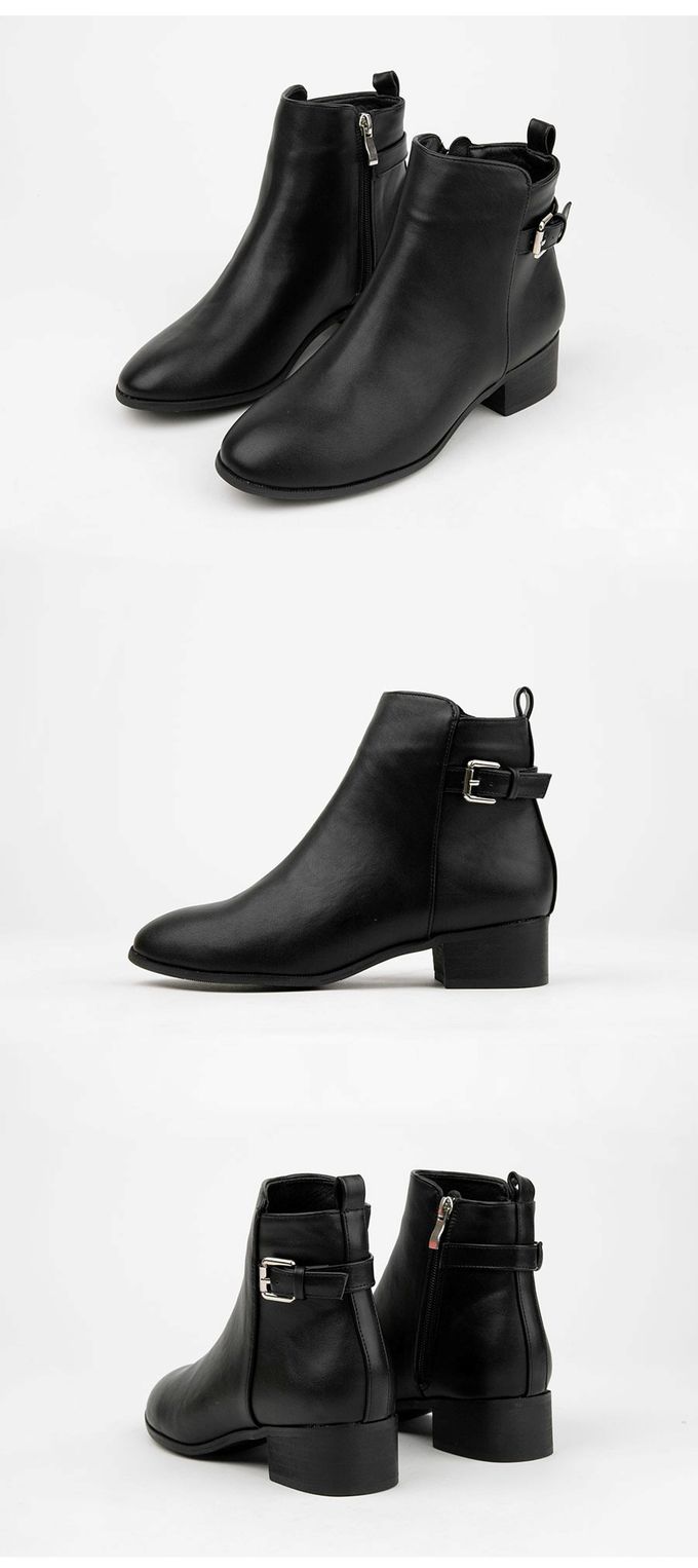 韓國 PINKELEPHANT - 簡約好搭配拉鍊短皮靴(4cm)-黑