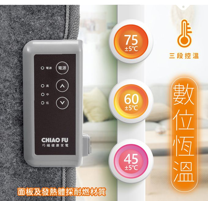 注意事項:高 / 中 / 低温 75 / 60 / 45℃ 定時:3小時自動斷電 傾斜 45˚ 自動斷電