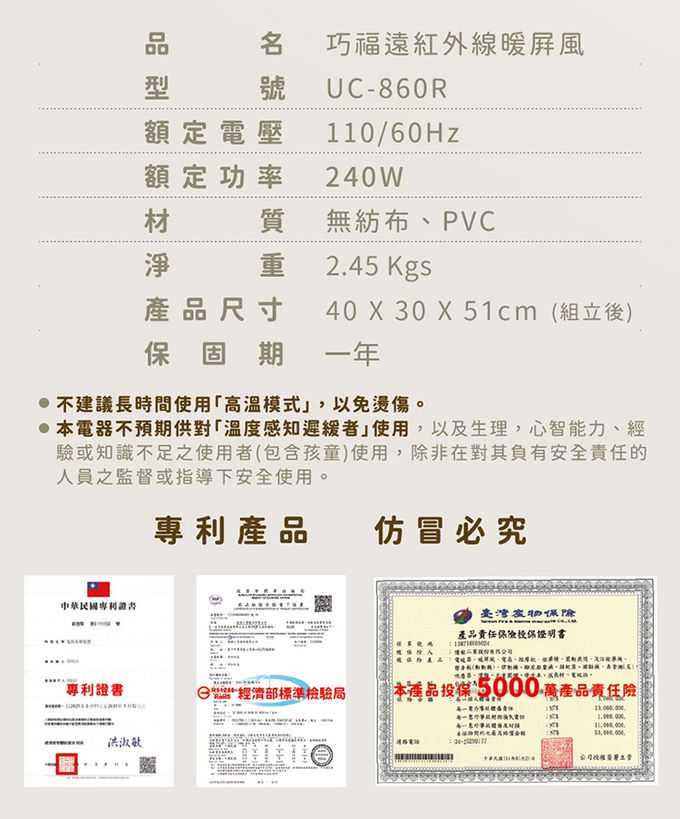 BSMI商品檢驗標識字號:經濟部標準檢驗局檢驗合格R51286