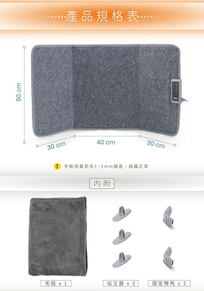 成分:附贈 : 毛毯 1條、固定彎角2 只 、站立器3只