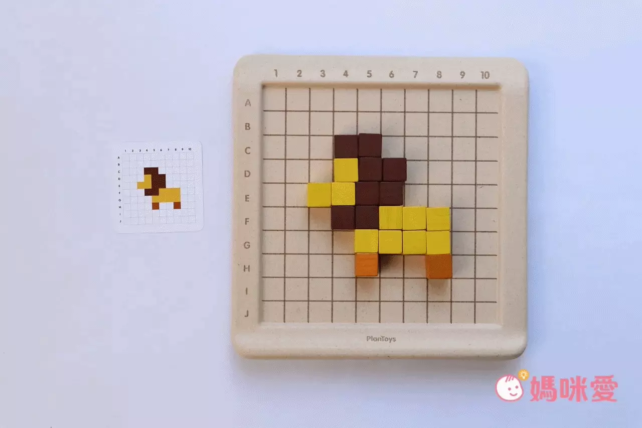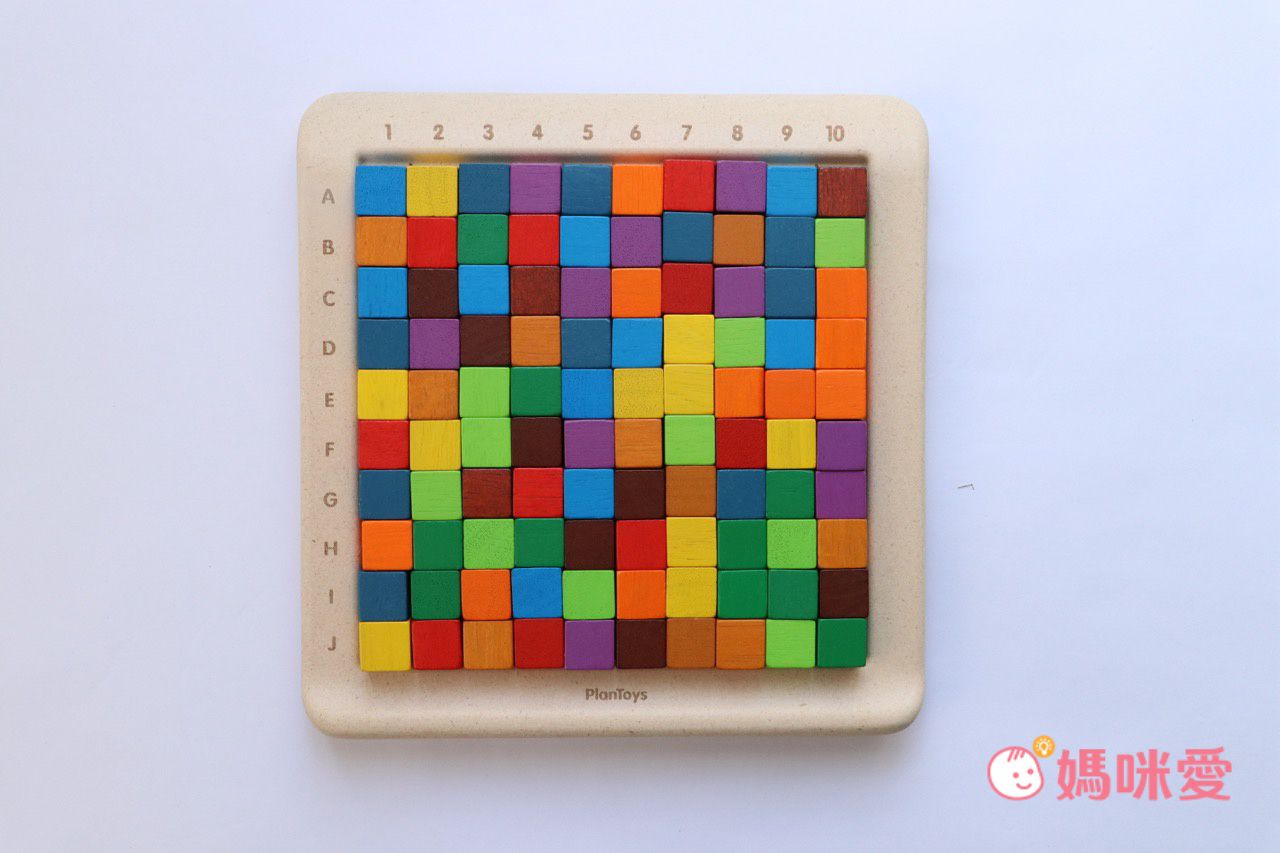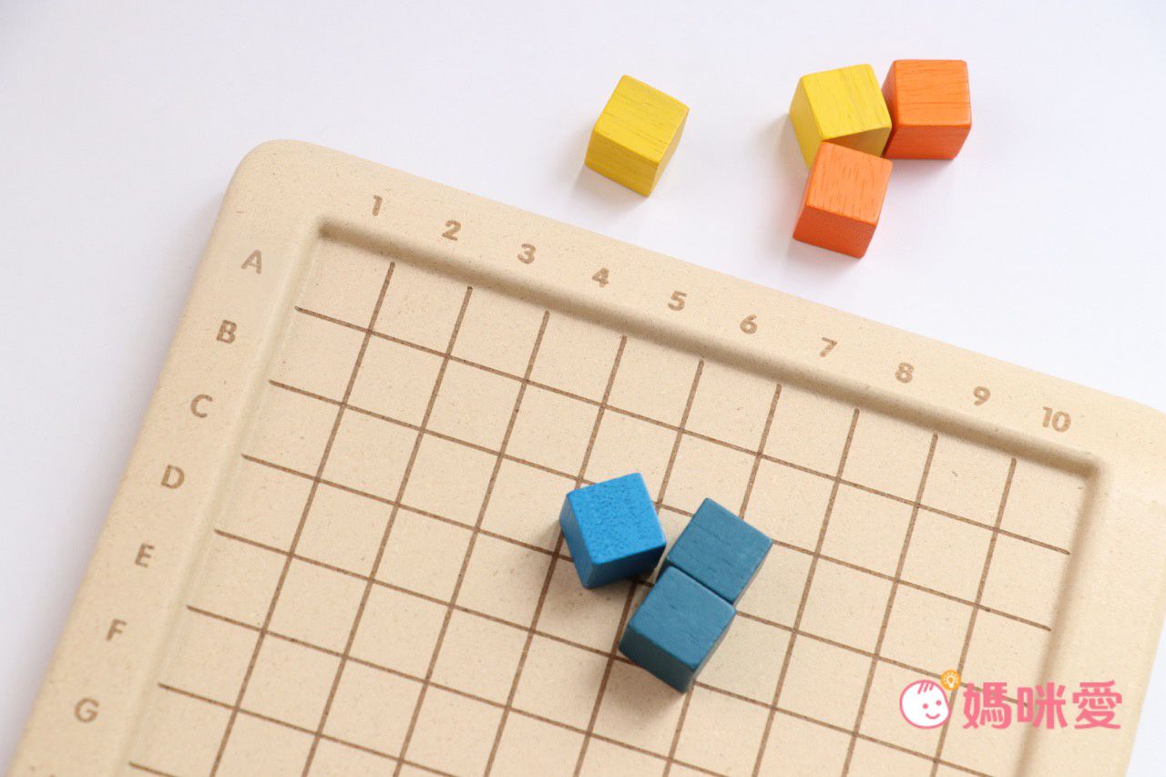 木板上有1-10以及A-J的座標,讓孩子同時學習空間邏輯、排序建構的能力!