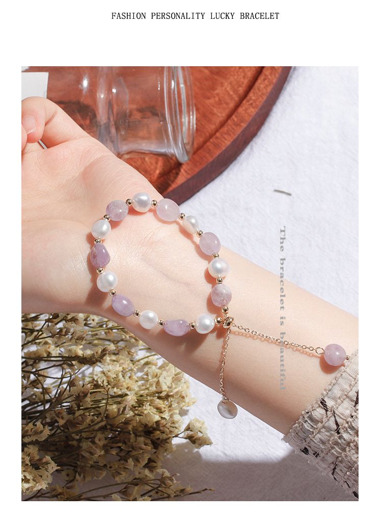 珍珠薰衣草紫滑扣手鏈 (14cm)