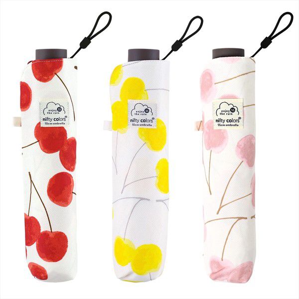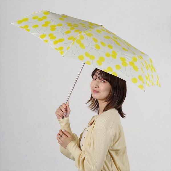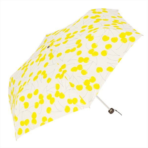 日本 nifty colors - 抗UV輕量 晴雨兩用折疊傘-美味櫻桃-陽光黃 (直徑98cm/195g)