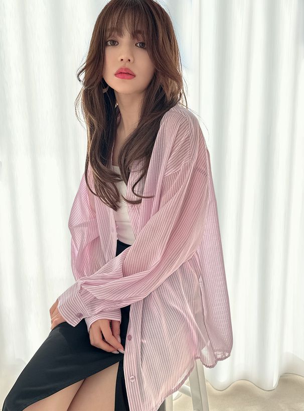 日本 GRL - 可愛後綁帶翻領透膚長袖襯衫-蜜桃粉 (F)