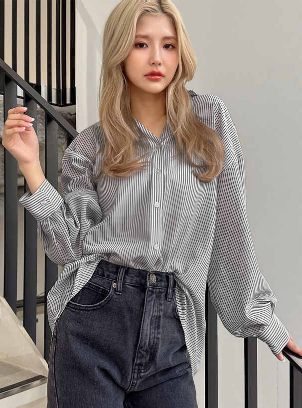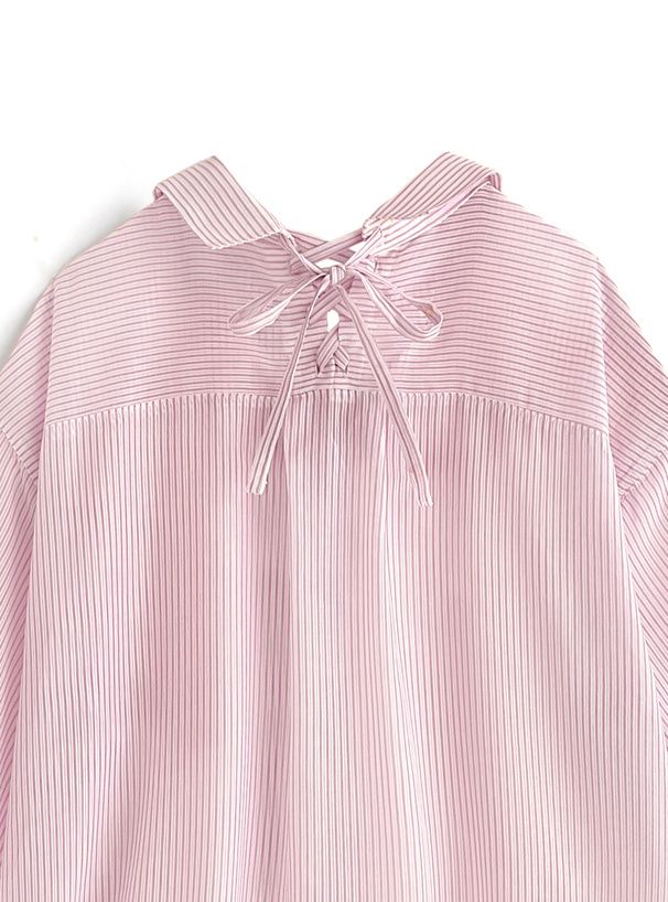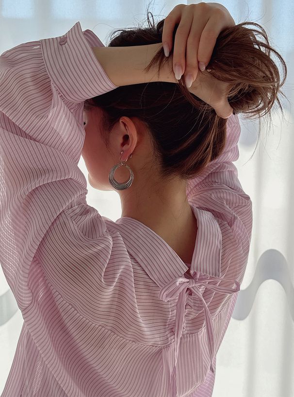 • 品名:可愛後綁帶翻領透膚長袖襯衫