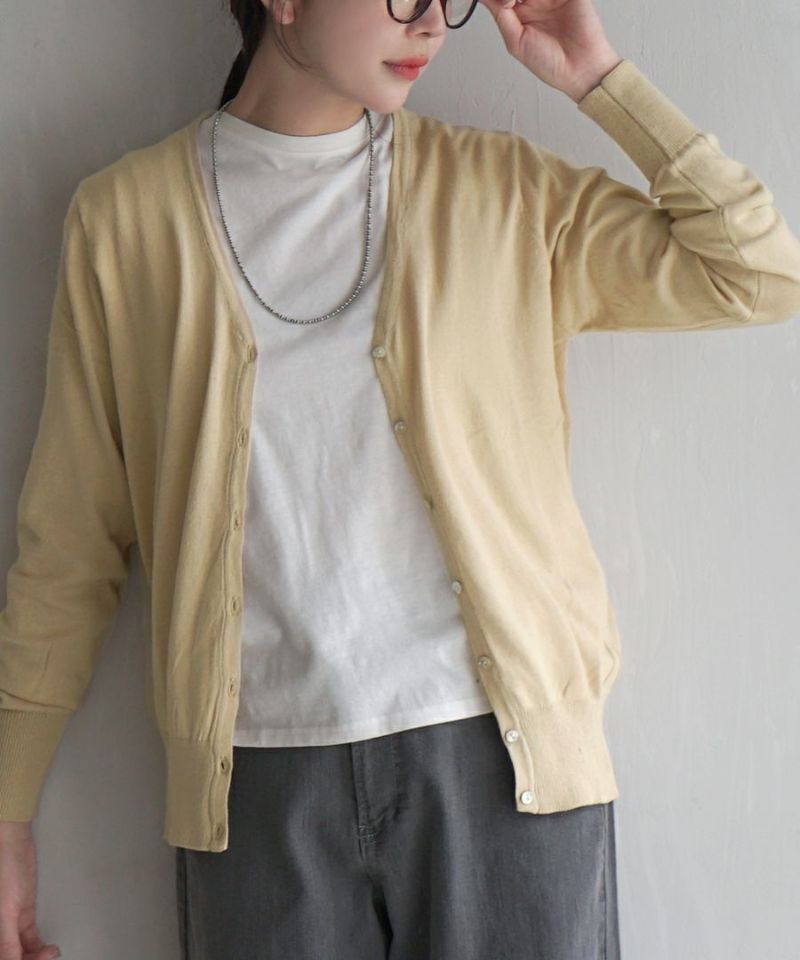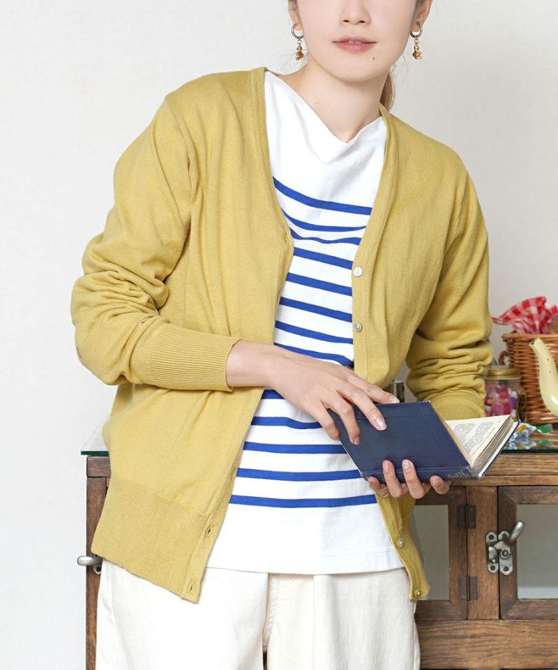 日本 zootie - 100%棉 簡約V領薄針織外套-芥末黃