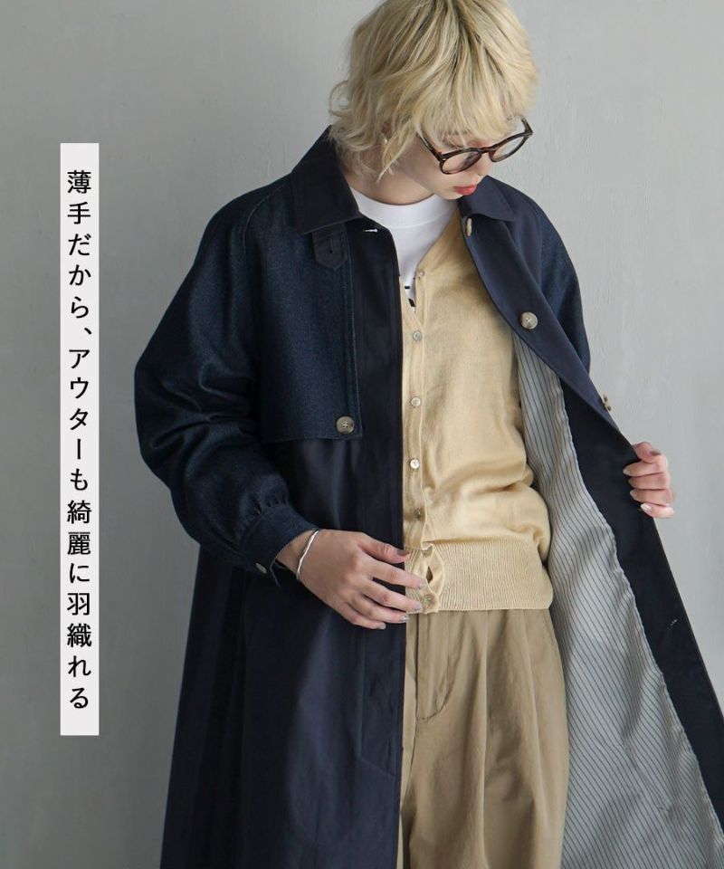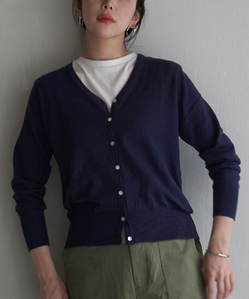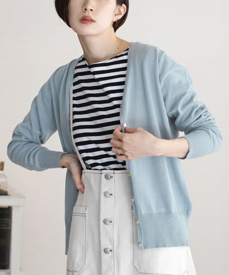 日本 zootie - 100%棉 簡約V領薄針織外套-煙燻藍