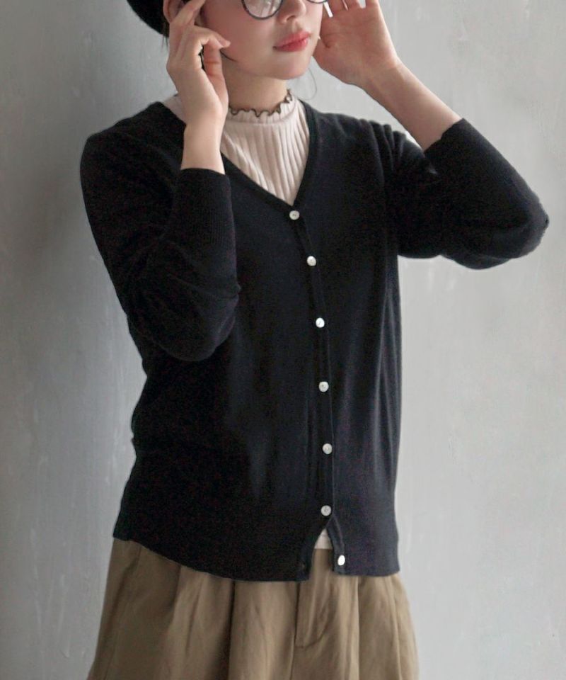日本 zootie - 100%棉 簡約V領薄針織外套-簡約黑