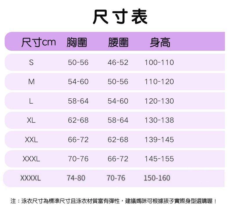 注意事項:1.選購前務必參考尺寸表挑選適合的尺寸,因為泳衣屬於貼身衣物,基於個人衛生考量,若非商品瑕疵,拆封後不予退換,感謝理解。 2.若對尺寸挑選或商品有任何疑問歡迎與我們聯繫,媽咪愛 LINE@客服ID:@mamilove