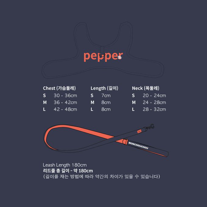 韓國 MONCHOUCHOU - (附牽繩)魔鬼氈式狗狗胸背帶-pepper-深藍