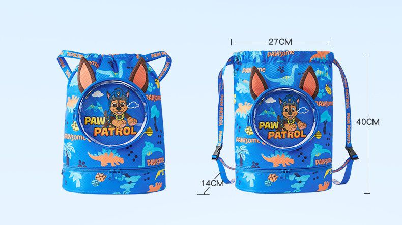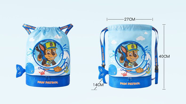 乾濕分離兒童游泳包-卡通人物阿奇+鯨魚-藍色 (27×14×40cm)