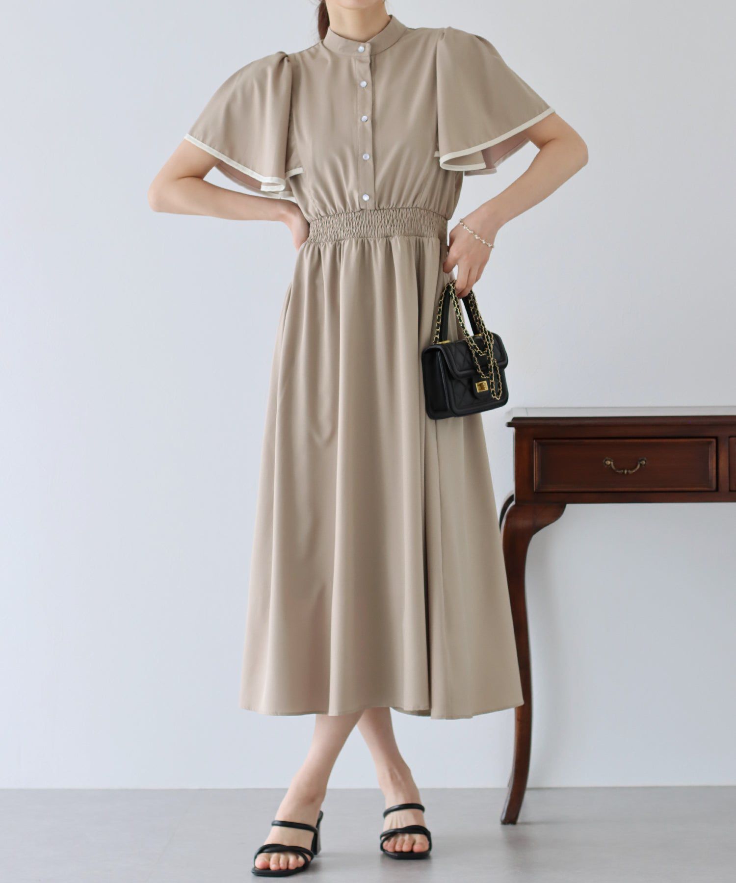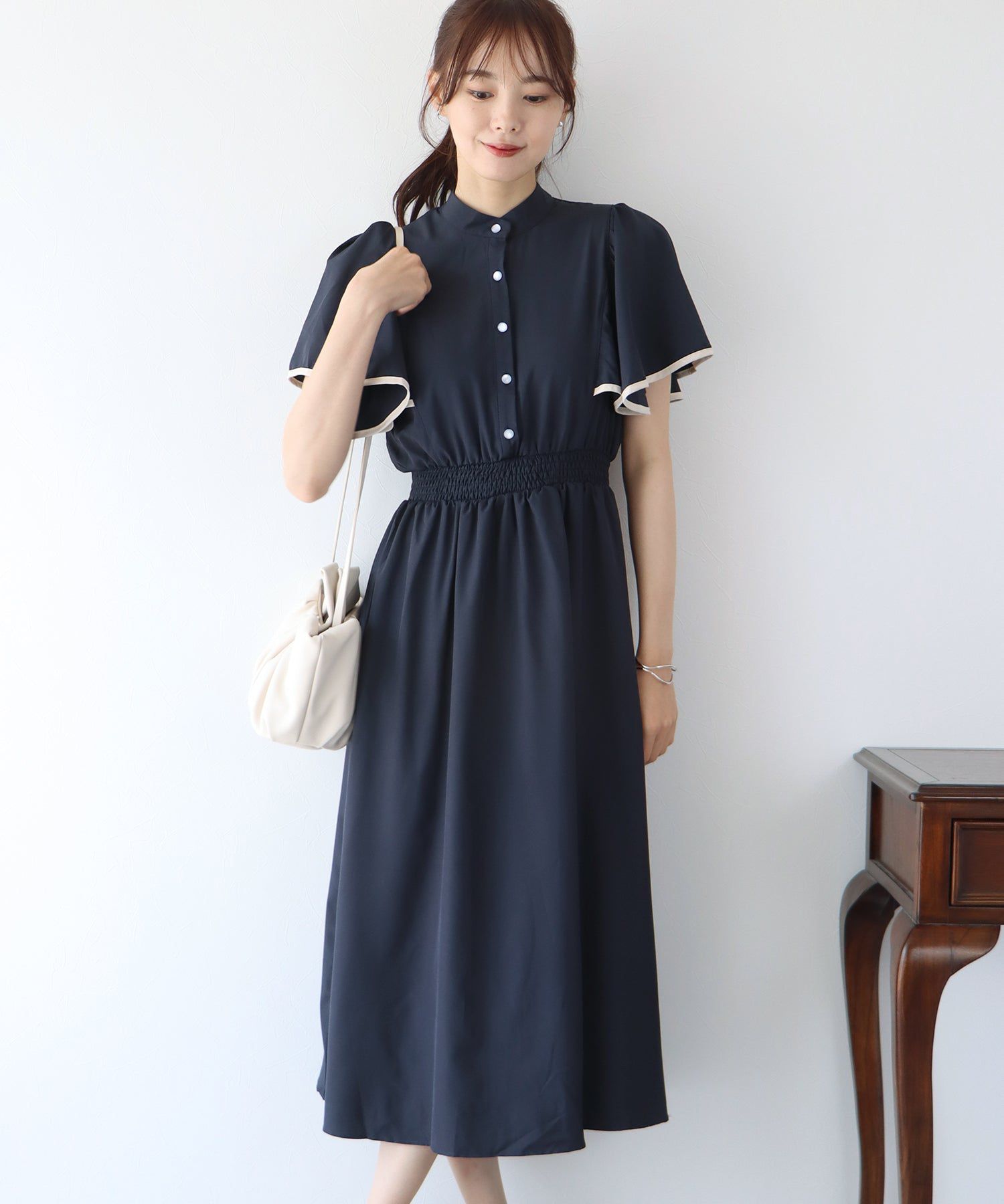 最讓編媽喜歡的就是腰圍這個蝴蝶結緞帶,緞帶的材質摸起來絲滑柔順,顯得非常高級呀~