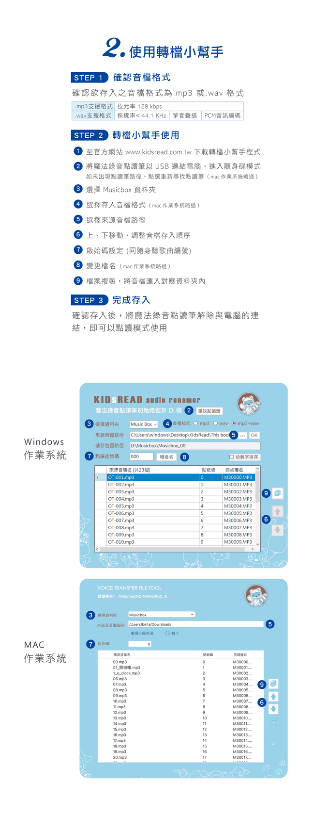 【Kidsread 魔法隨身聽轉檔名使用方式】