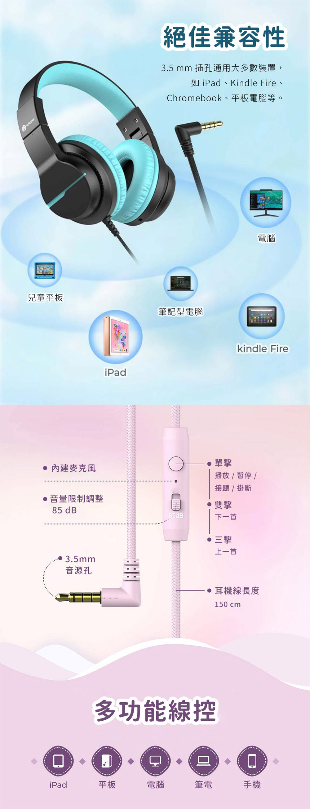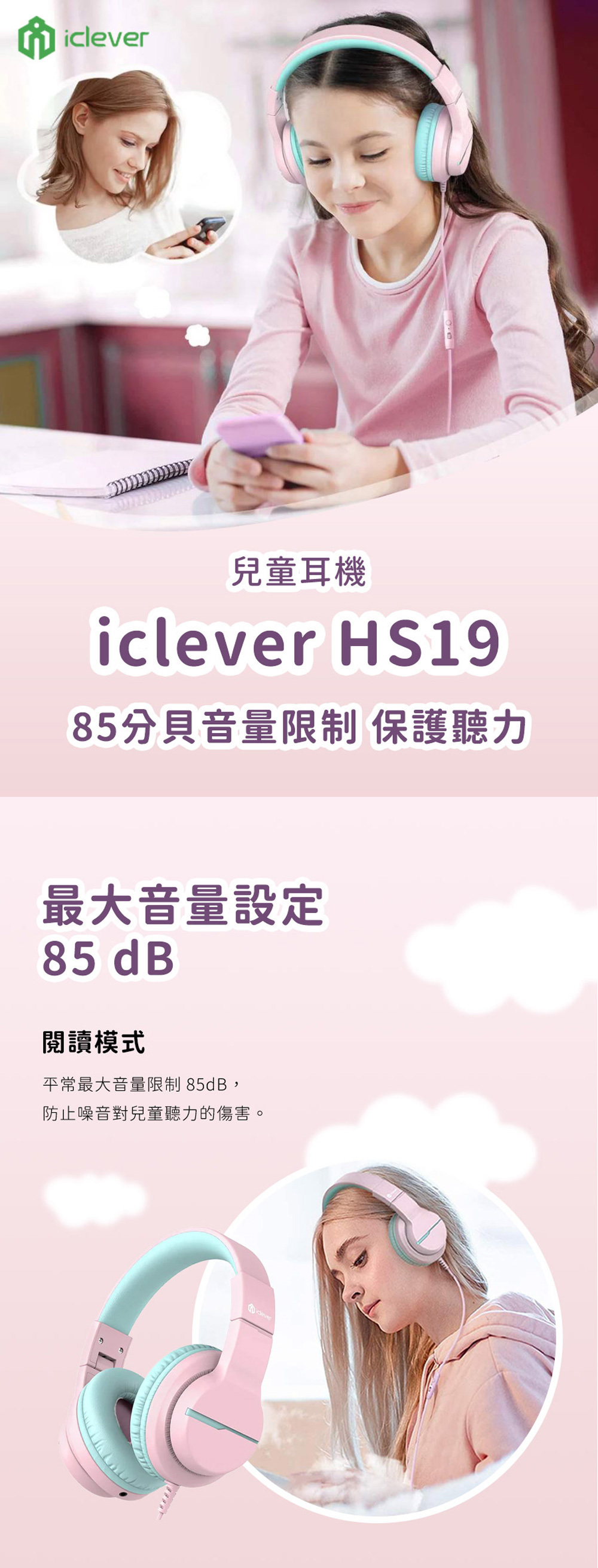 產品名稱:iClever HS19 兒童耳機