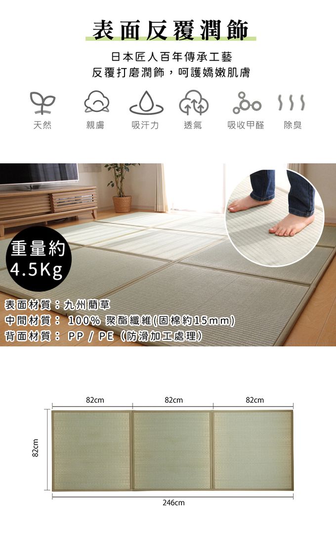 品名:日本製天然無染藺草3摺摺疊榻榻米82×246cm