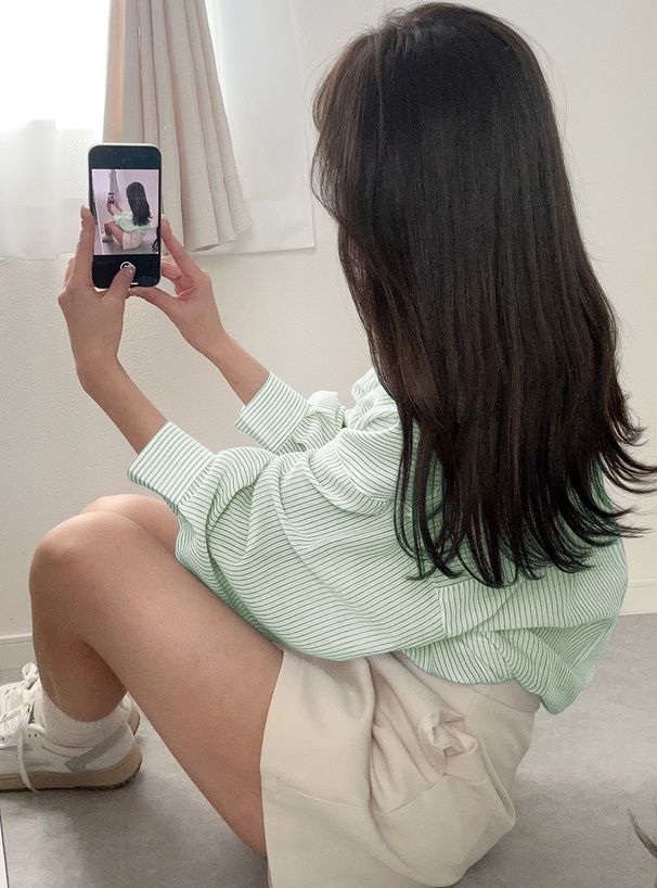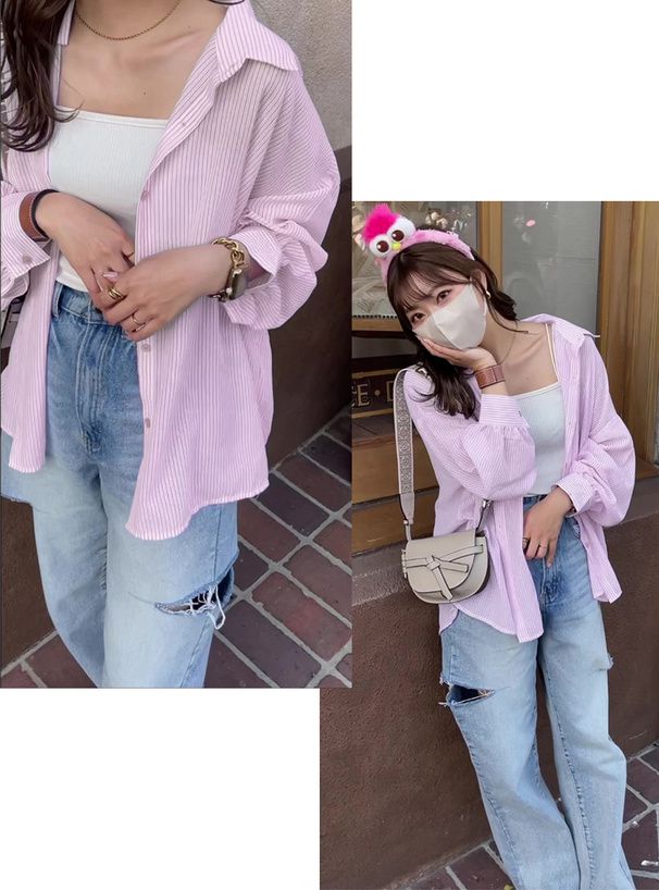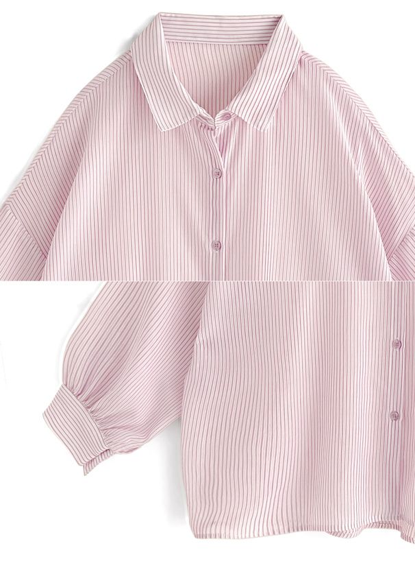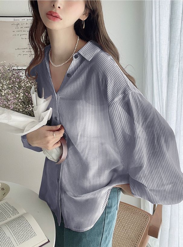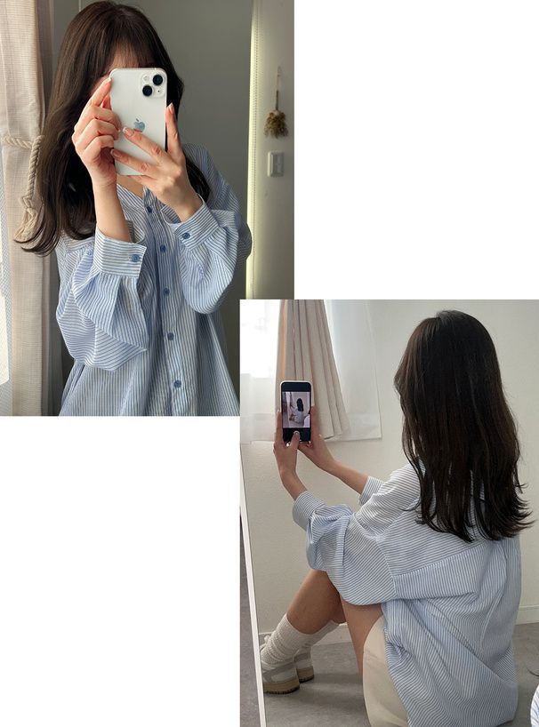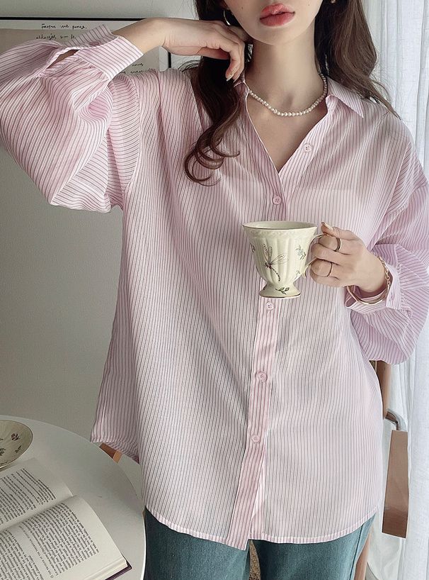 • 品名:條紋透膚感寬鬆休閒感長袖襯衫