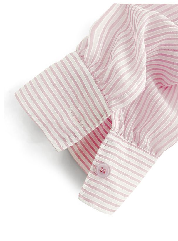 日本 GRL - 條紋透膚感寬鬆休閒感長袖襯衫-淺粉紅 (F)