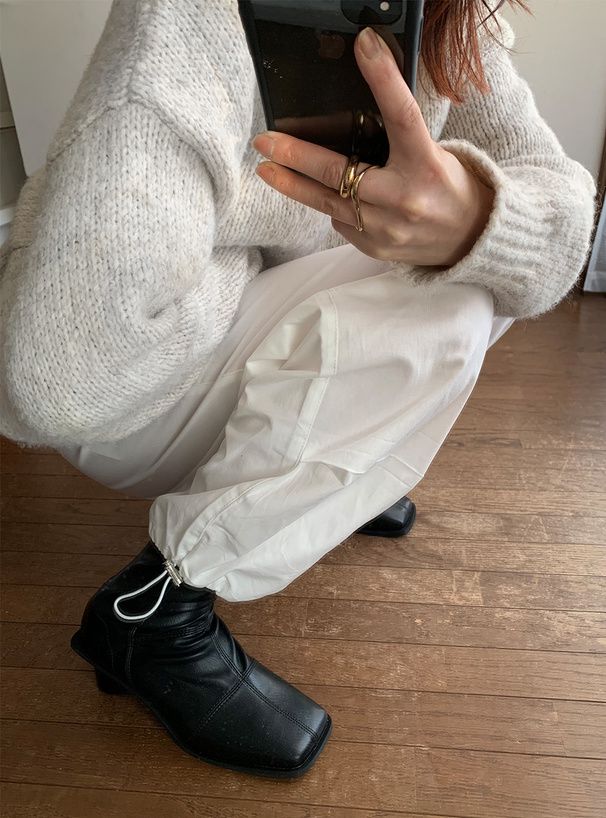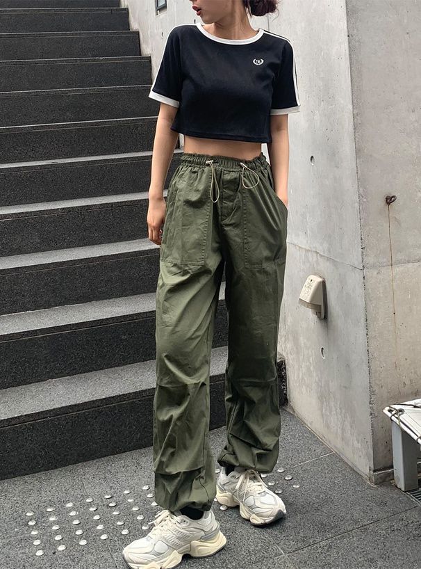 日本 GRL - 帥氣抽繩美式工裝褲-黑 (F)