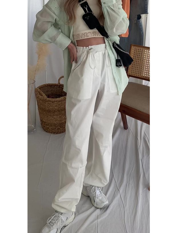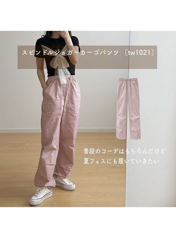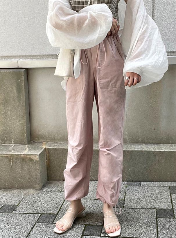 日本 GRL - 帥氣抽繩美式工裝褲-淺粉 (F)
