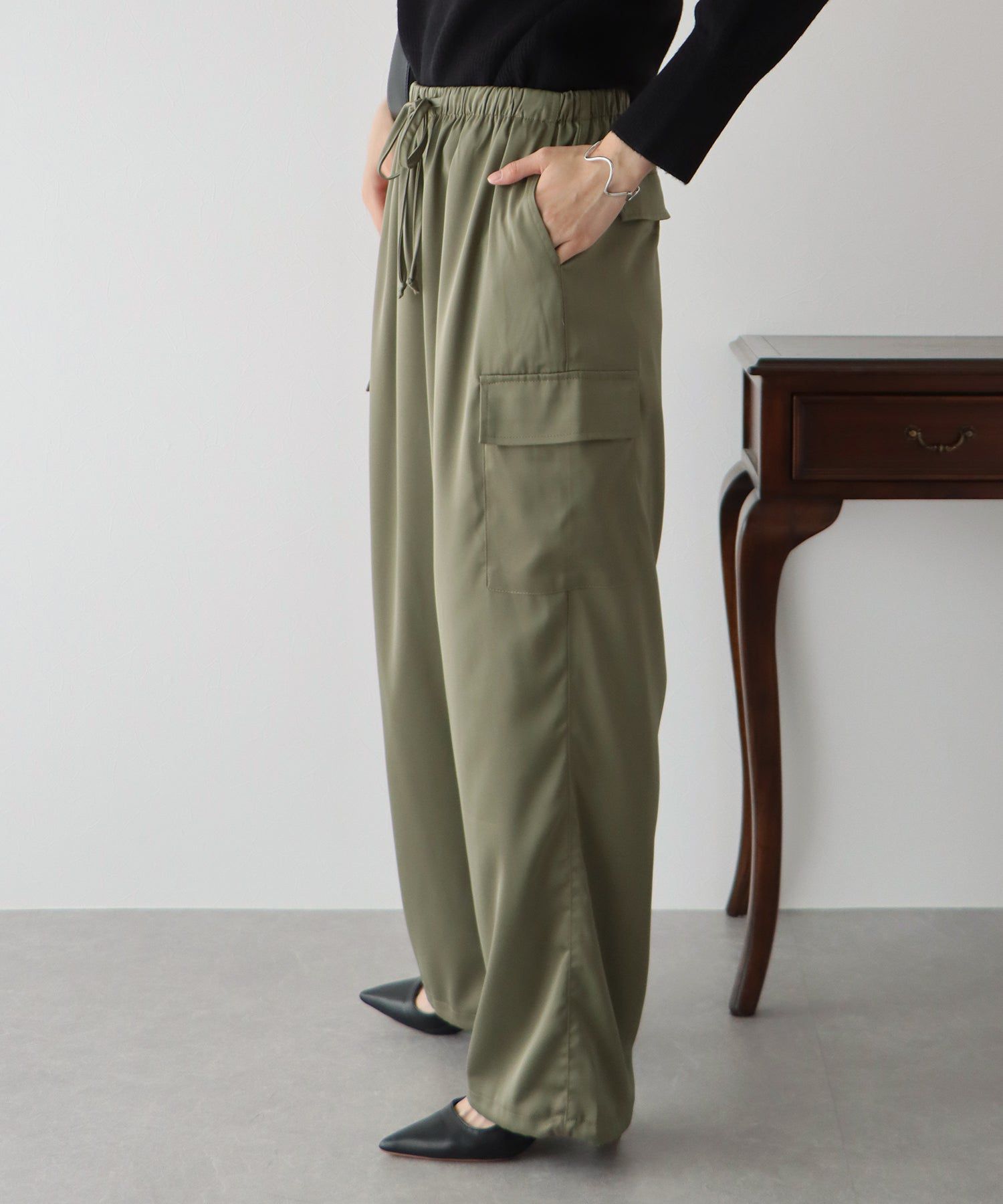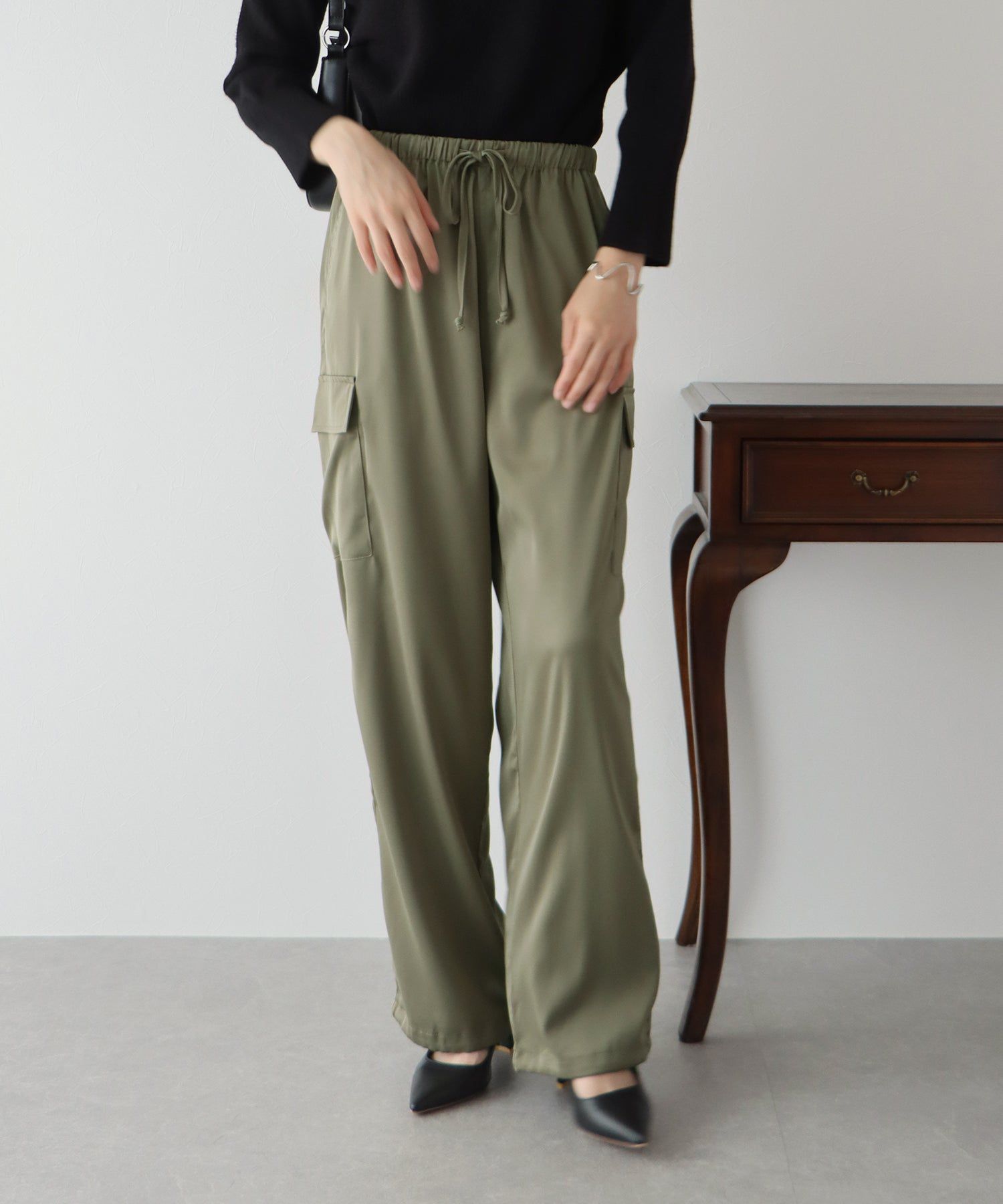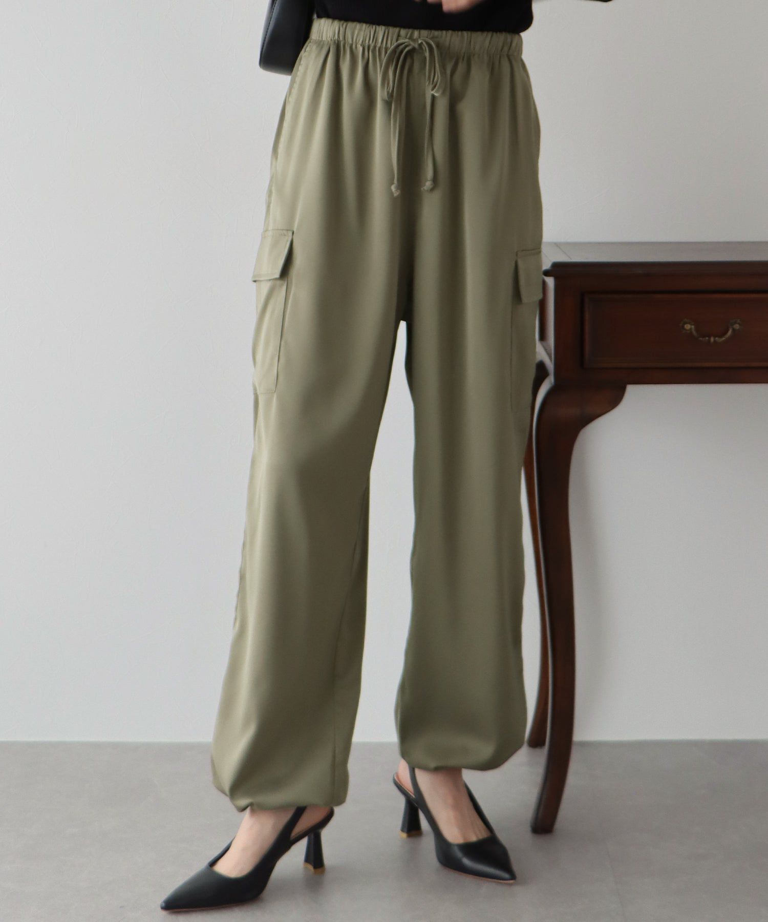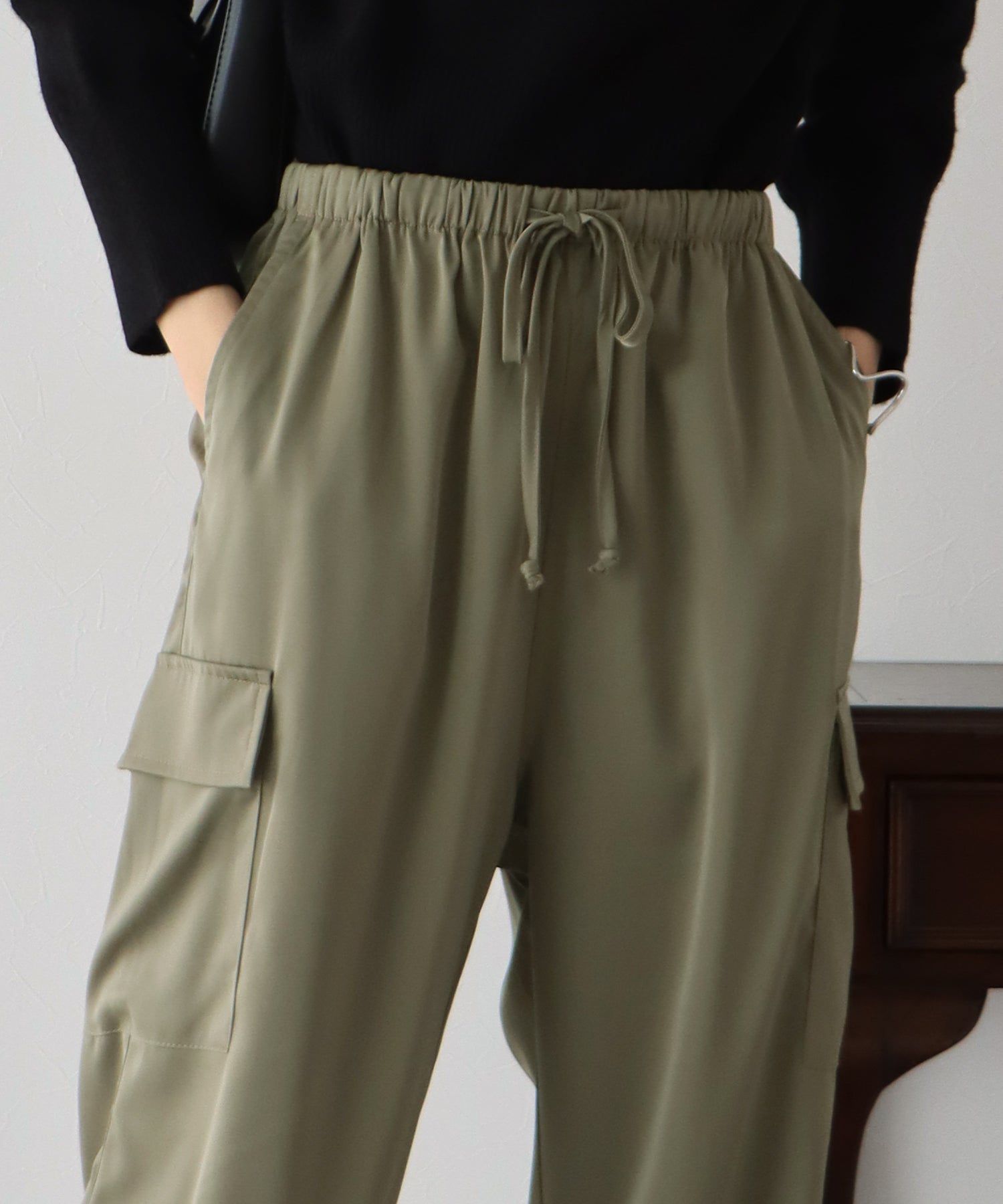 日本 BLUE EAST - 美式工作風緞面精緻感長褲-軍綠