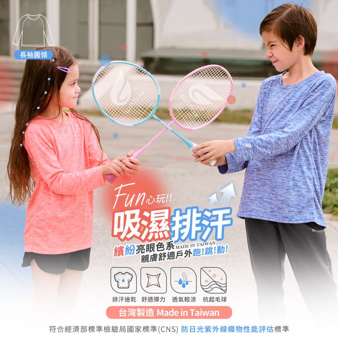 兒童花紗透氣排汗運動衣-長袖圓領款-亮桔