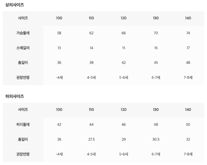 上衣尺寸表由上而下為:尺寸、胸圍、袖長、總長、建議年齡