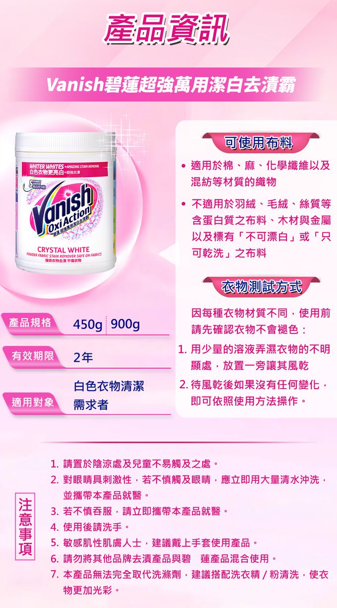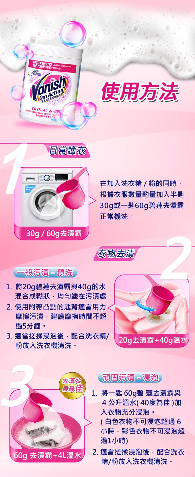 ◾平常洗衣時,倒入洗衣精後加一匙碧蓮超強萬用潔白去漬霸 60g置洗衣機洗劑槽內。