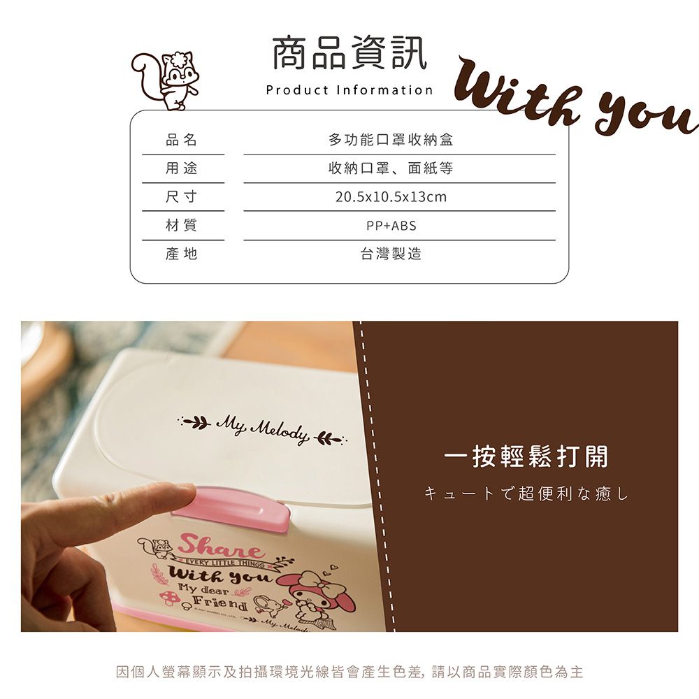 品名:三麗鷗Sanrio【布丁狗】50入口罩收納盒 衛生紙盒 濕紙巾盒 塑膠收納 內建彈簧自動向上