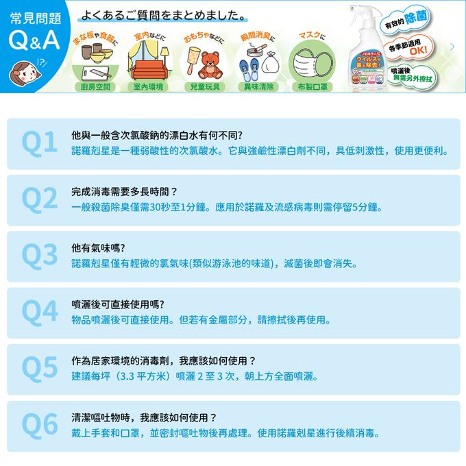 諾羅剋星噴劑,是參考食品加工廠或醫院等嚴格衛生管理標準下所開發的技術製造而成。