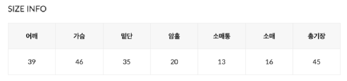 *尺寸表由左而右為:肩寬、胸寬、下擺寬、袖孔、袖口寬、袖長、衣長