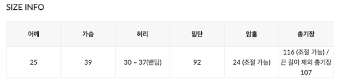 *尺寸表由左而右為:肩寬、胸寬、腰寬(鬆緊腰)、下擺寬、袖孔(可調節)、衣長(可調節/除了綁帶以外的總長)
