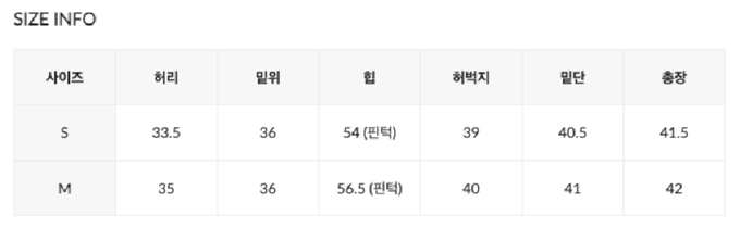 *尺寸表由左而右為:尺寸、腰寬、腿圍、臀寬、襠長、褲管寬、褲長