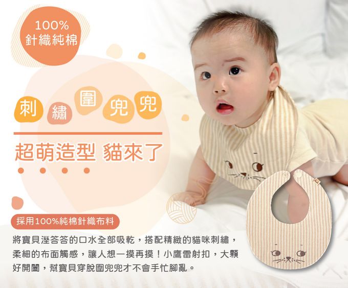 品名:100%針織純棉貓來了刺繡貓咪圍兜兜4件超值組