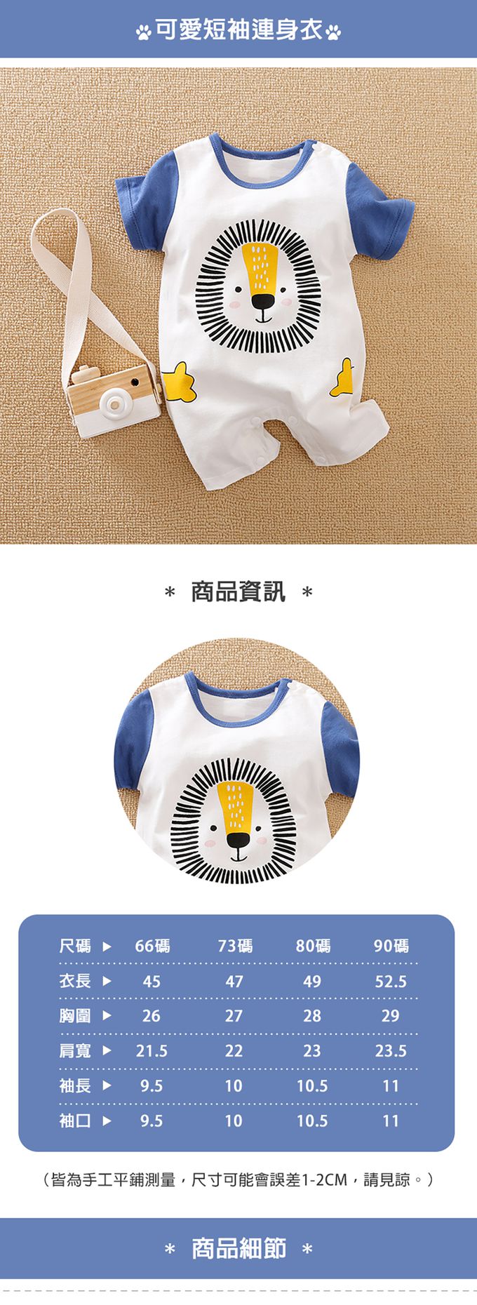 棉質短袖包屁衣 短袖嬰兒服-獅子