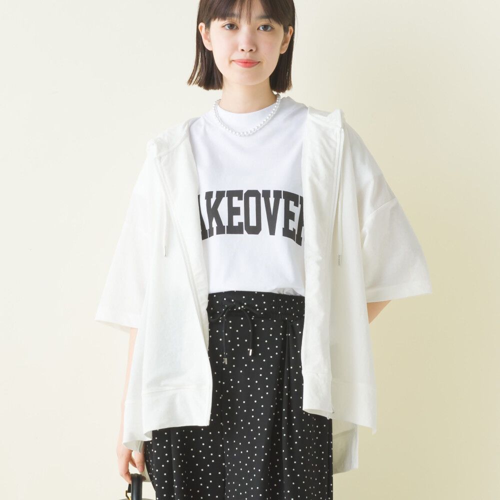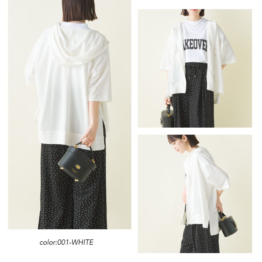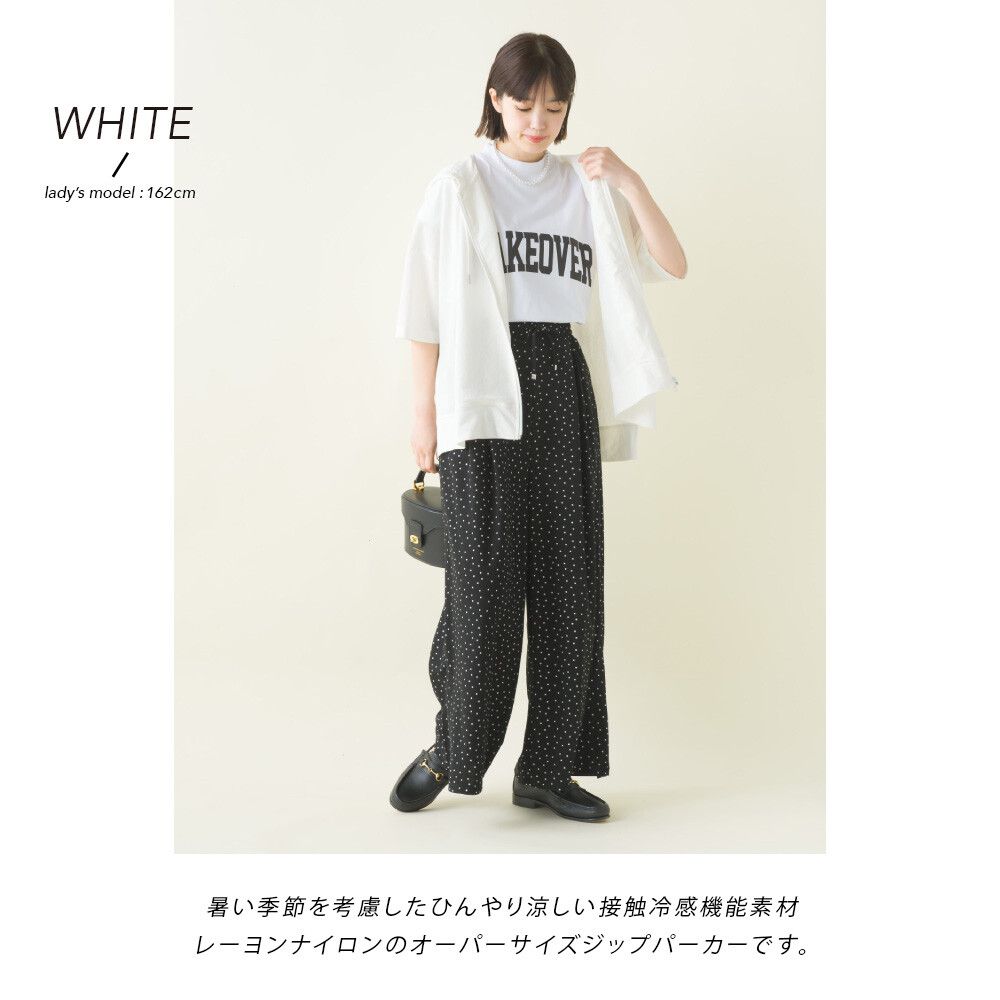 日本 OMNES - 接觸涼感 五分袖抽繩連帽外套-白