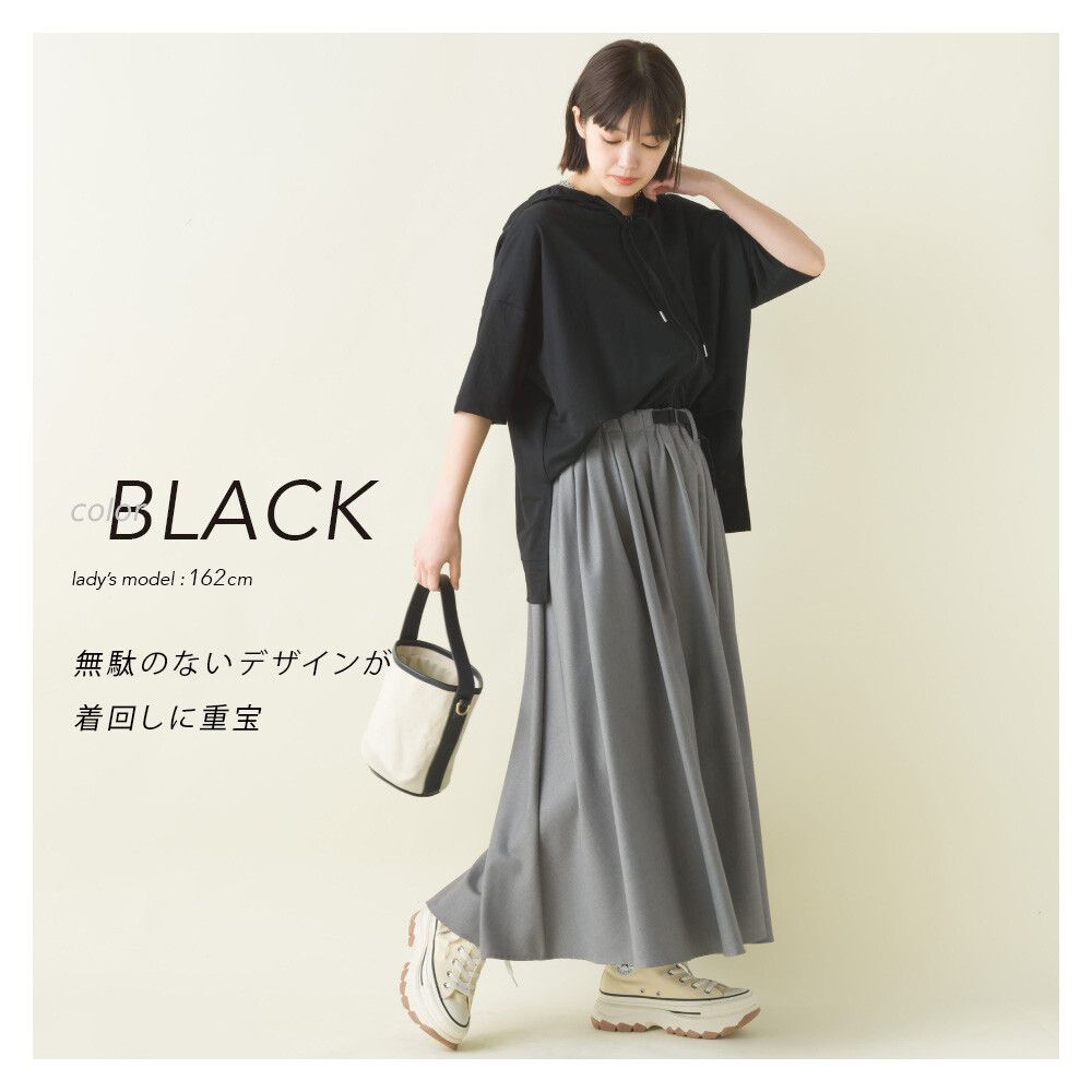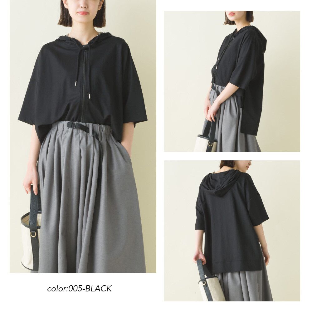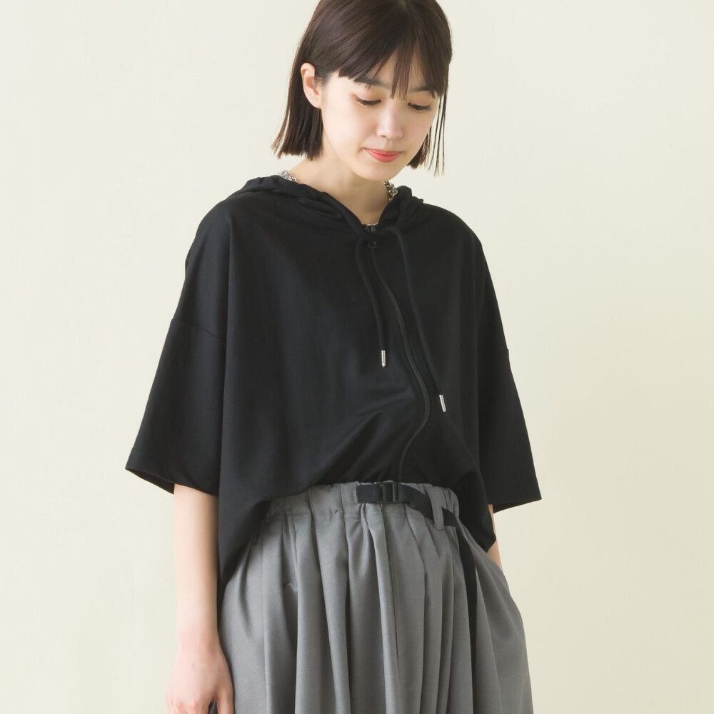 日本 OMNES - 接觸涼感 五分袖抽繩連帽外套-黑