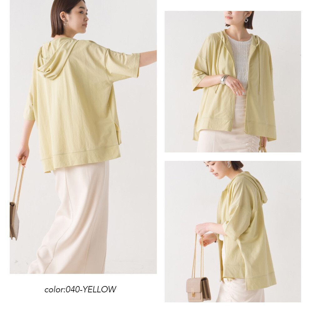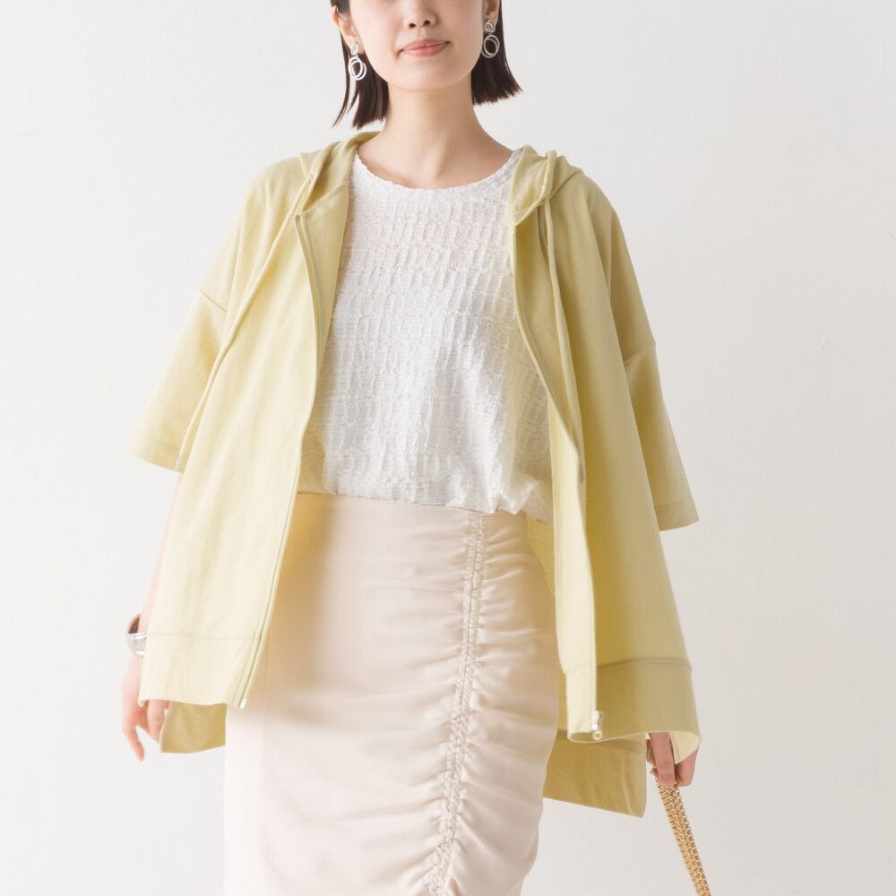 日本 OMNES - 接觸涼感 五分袖抽繩連帽外套-淺鵝黃