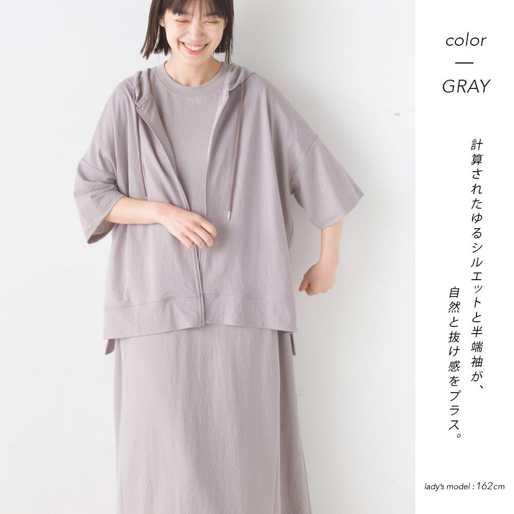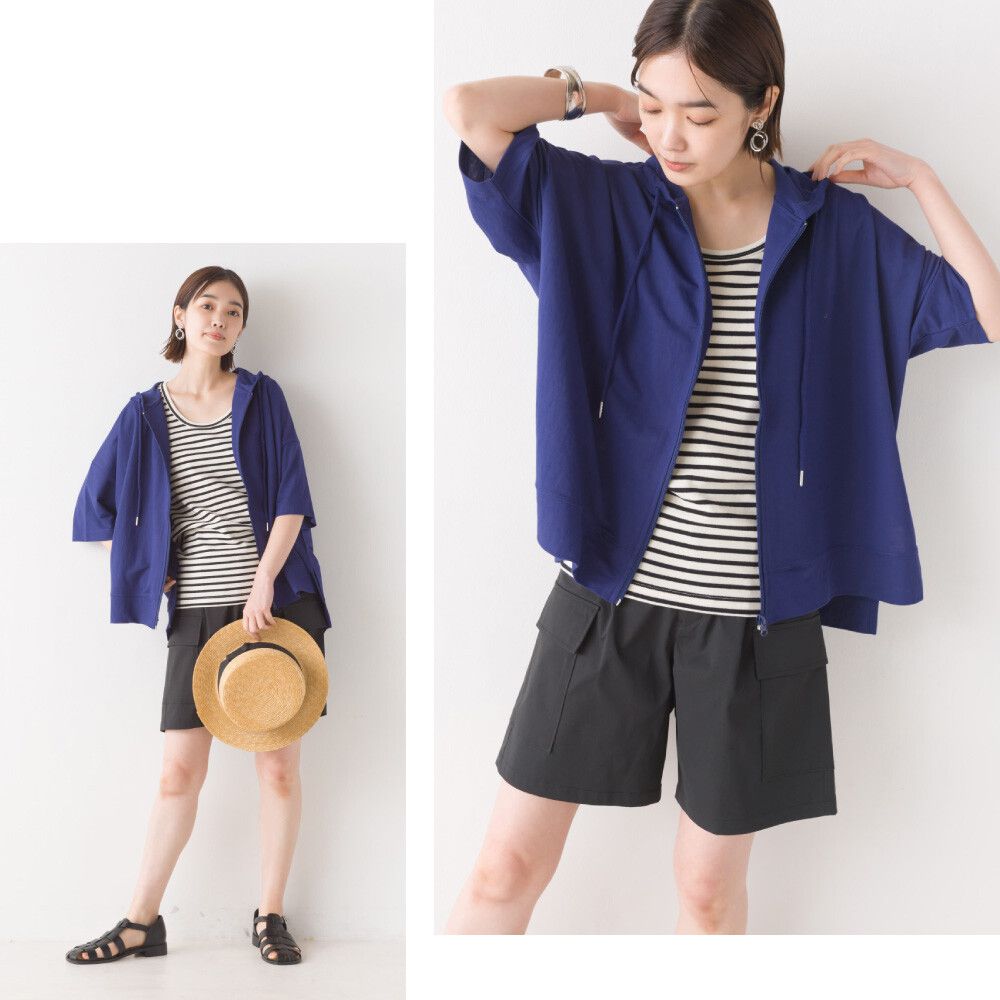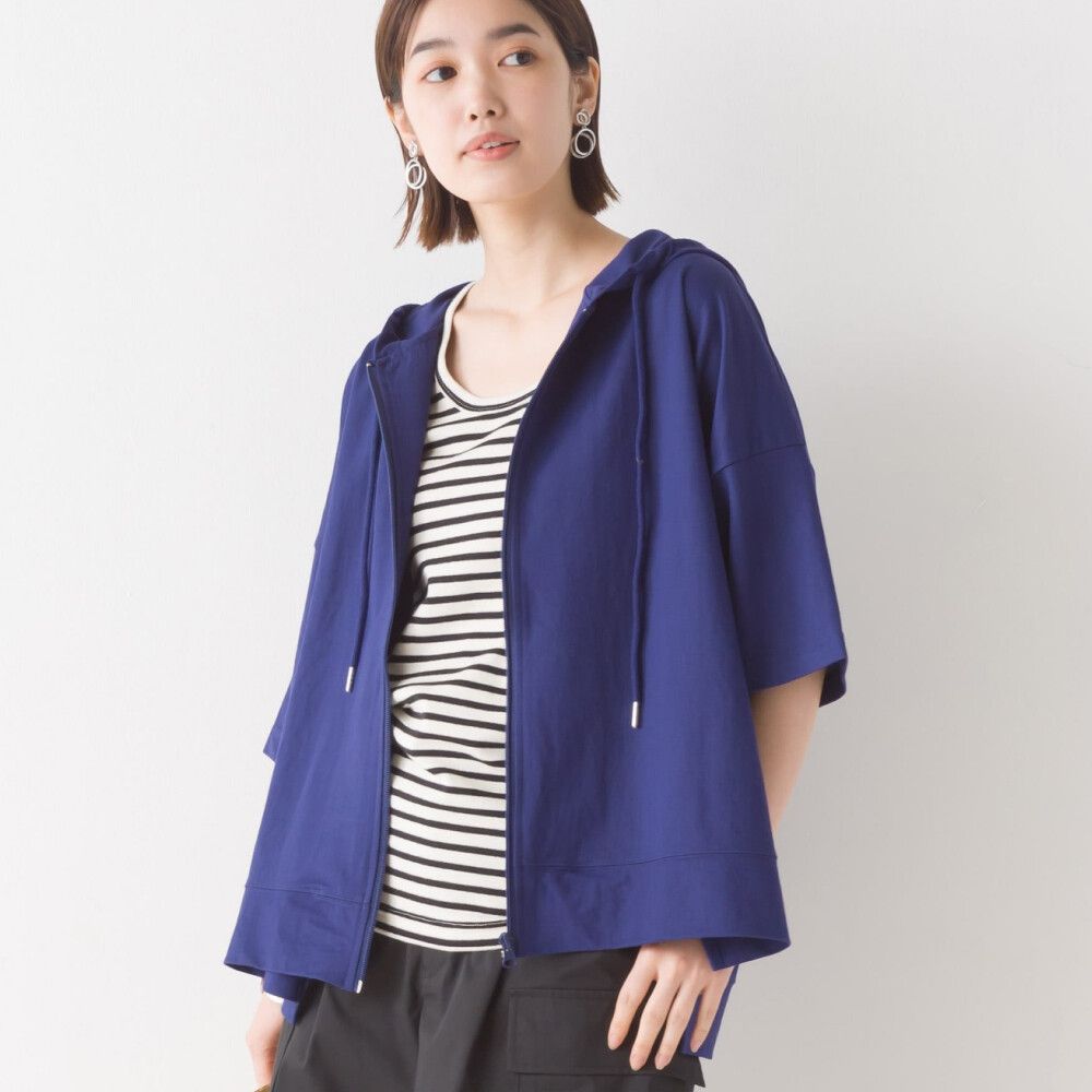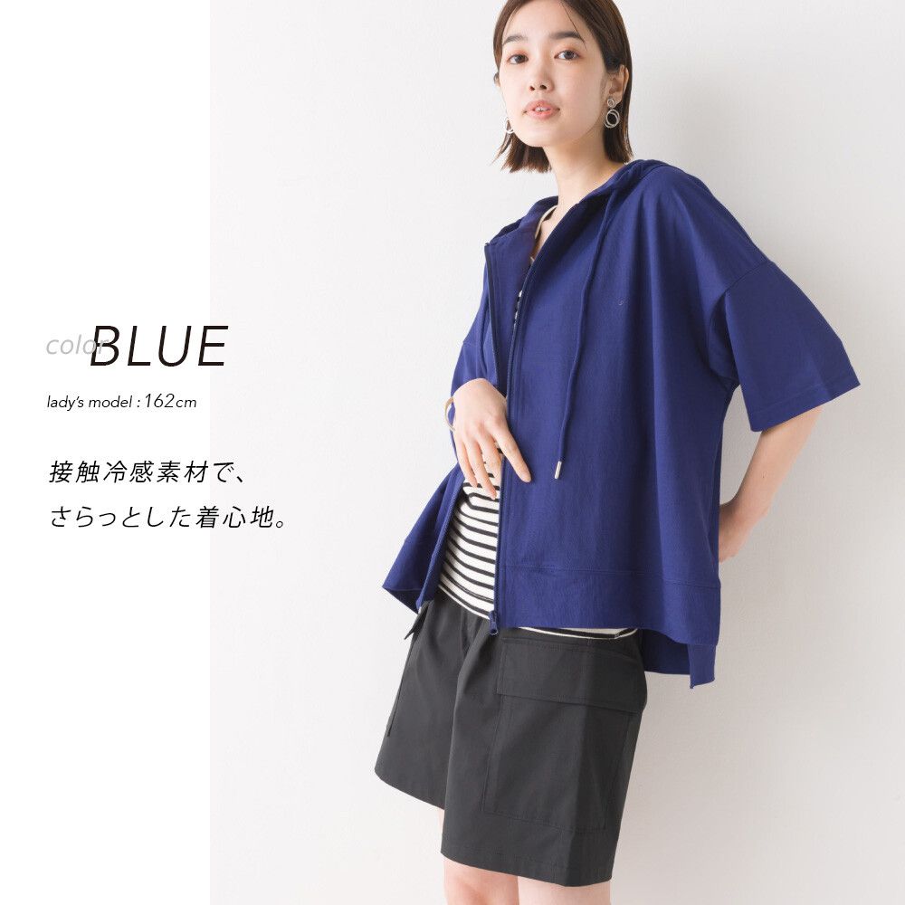 • 品名:接觸涼感 五分袖抽繩連帽外套