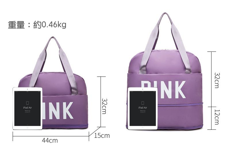 大容量可展開乾濕分離旅行運動包-PINK-粉色