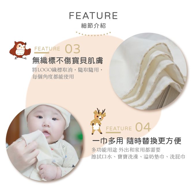 擦拭口水、寶寶洗澡、溢奶墊巾、洗屁巾