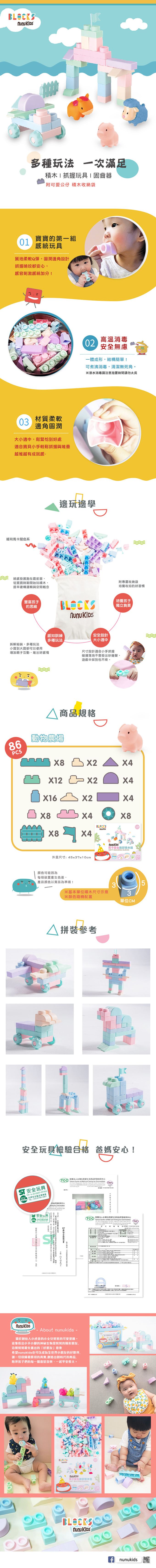 品名:馬卡龍軟膠積木+公仔配件組-農場動物86pcs